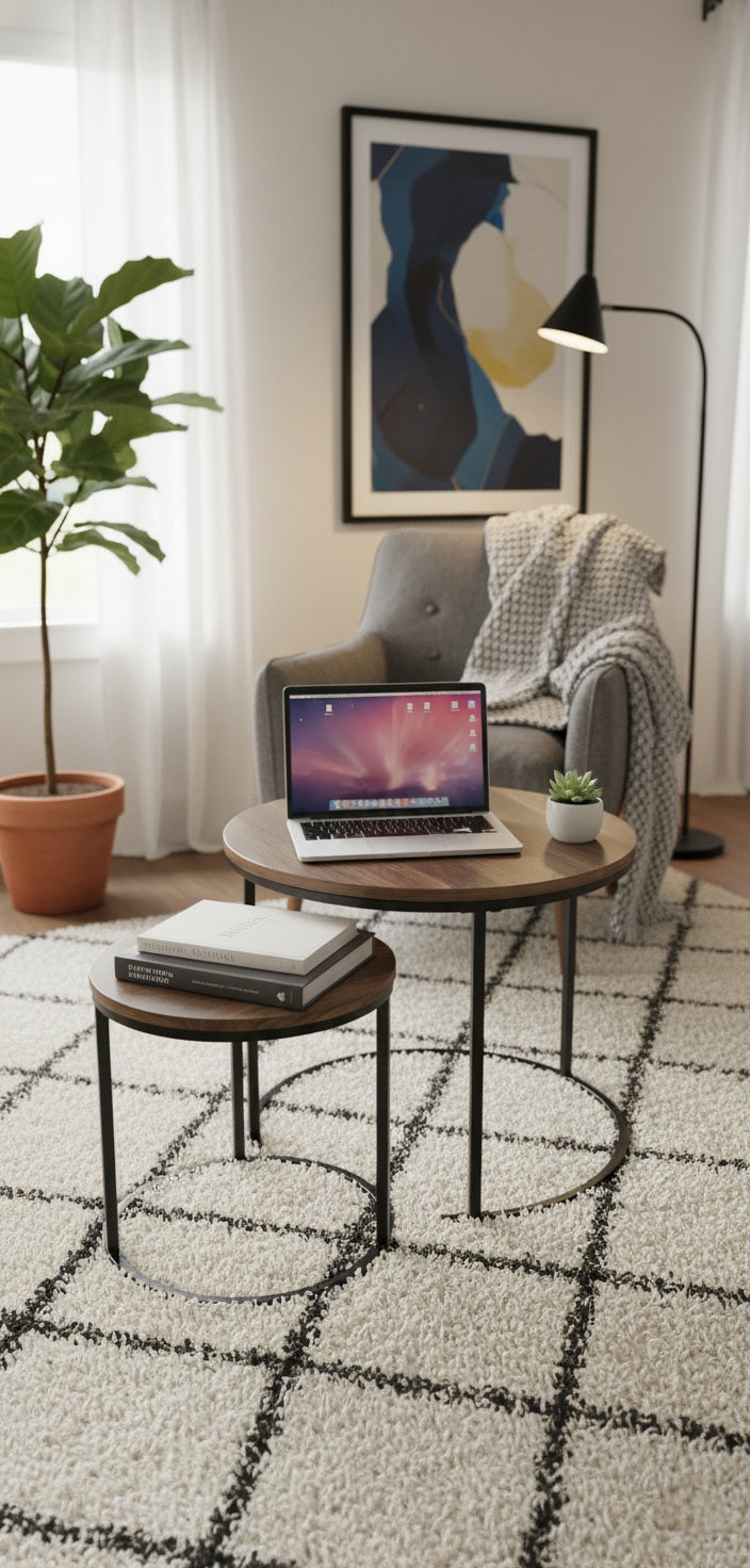 Multi-Functional Use: Use them together as a layered coffee table, separate them as matching end tables or side tables, or use the smaller table as a stylish plant stand.