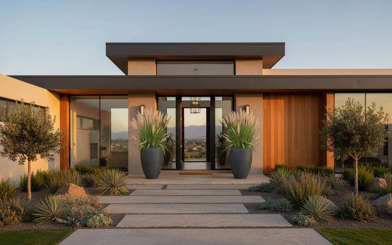 Entryway Drama: Flank your front door with a matching pair filled with tall ornamental grasses or sculptural plants for an impressive welcome.
